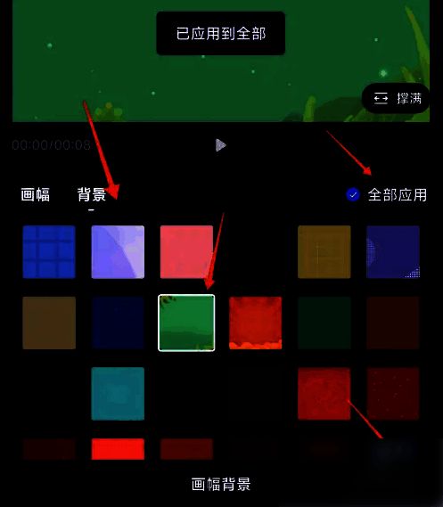 选择背景后选择【全部应用】保存视频。