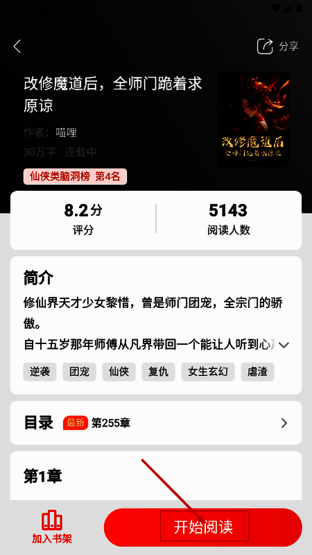 2、一键打开进入详情页,然后点击"开始阅读"。