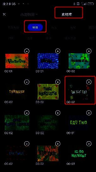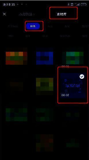 跳转的页面点击素材库 ,点击转场。