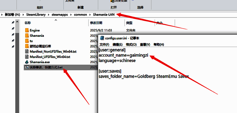 双击打开游戏目录下面的“名称修改,快捷方式.bat”,找到“account_name=gaimingzi”,把“gaimingzi”改成自己想要的名字保存。
