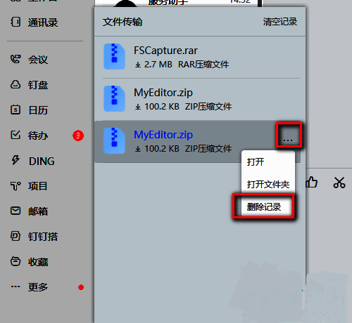钉钉电脑版如何删除上传和下载记录