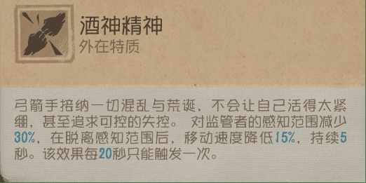技能解析:弓箭手的感知范围(心跳示警范围)减少30%,在脱离感知范围后移速减少15%该效果每20秒只会触发一次。