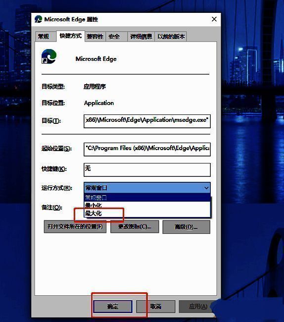 3、然后选择下方选项列表中的"最大化",最后点击"确定"保存即可。
