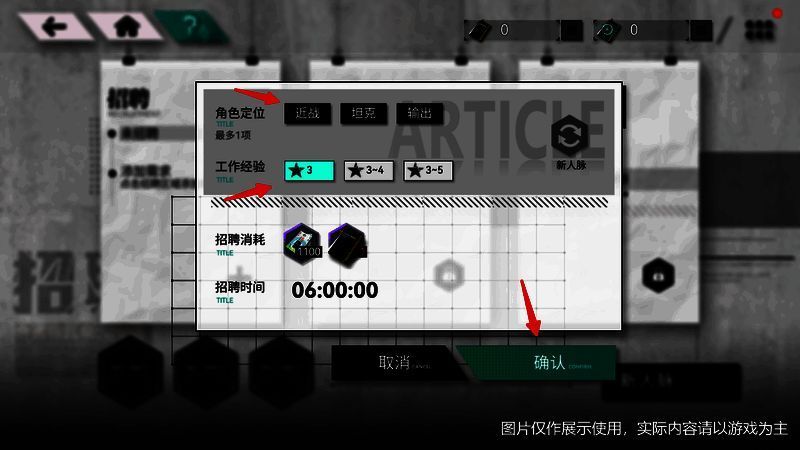 进入 “招聘” 界面后,先选好想要的角色定位和工作经验,然后消耗“联邦货币”和“招聘简历”就能发起招聘。等招聘时间结束,就会随机得到一个角色。