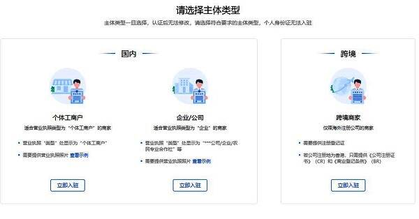 2、接着选择店铺的主体类型。