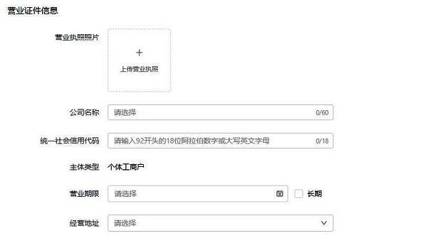 3、随后上传营业执照并填写正确的营业执照信息。