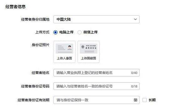 4、然后填写经营者信息,上传身份证。