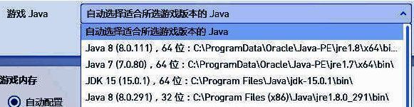 2、在打开的窗口界面中,点击左侧栏中的"游戏"选项,然后找到右侧中的"游戏Java"一栏,并点击"自动搜索"按钮。