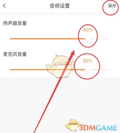 5、在音频设置页面,点击拖动即可调节扬声器音量和麦克风音量。