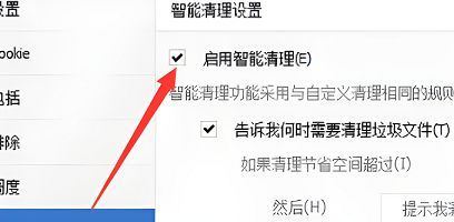 3、然后找到"智能清理设置"一栏中的"启用智能清理",最后将其小方框给勾选上就可以了。