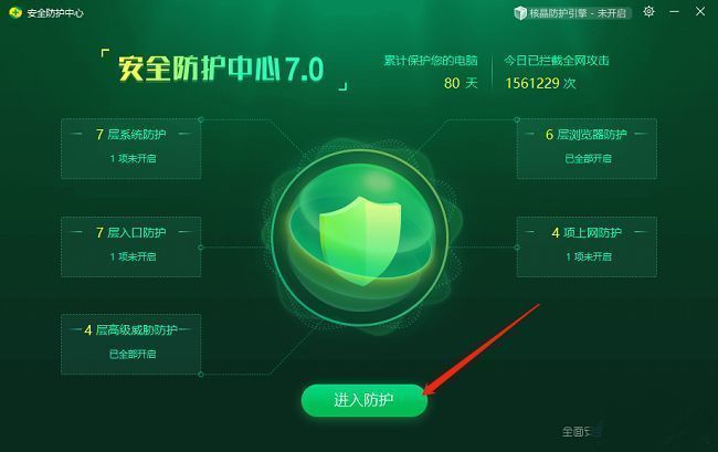 2、在打开的窗口界面中,点击下方中的"进入防护"。