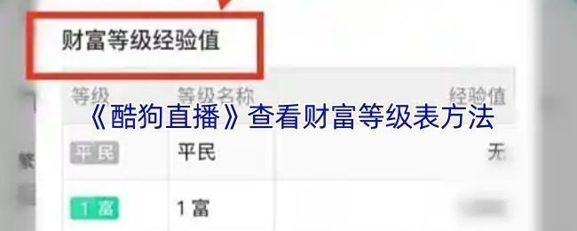 打开酷狗直播APP并登录个人账户,在首页或菜单栏找到“我的”进入个人中心,查找“财富等级”“等级特权”或类似入口,点击进入后即可查看财富等级表,其中会显示不同等级对应的财富数值、等级名称以及相应的特权说明等信息。