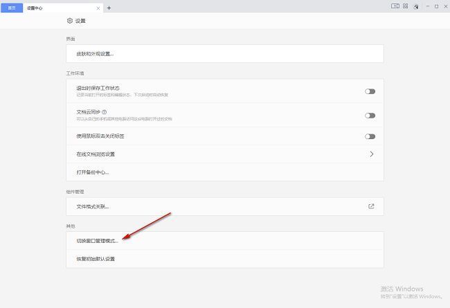 3、在打开的窗口界面中,点击"切换窗口管理模式"选项。