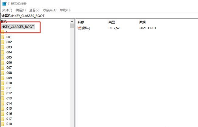 2、进入注册表编辑器后,点击左侧栏中的" HKEY_CLASSES_ROOT",将其展开。