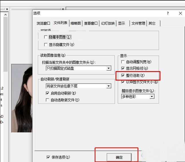 3、然后找到下方中的"整行选取",将其小方框勾选上,最后点击"确定"保存即可。