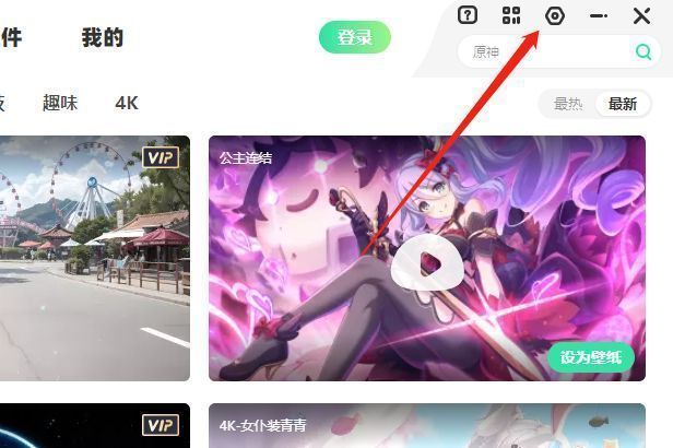 1、双击打开软件,点击右上角的"设置"图标。