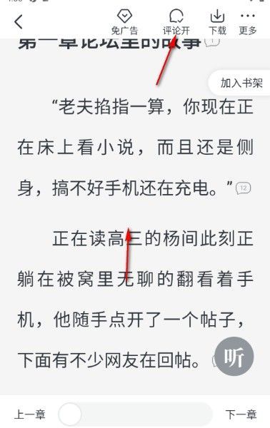 趣读免费小说怎么隐藏评论气泡,如果不喜欢在阅读的时候查看到任何的气泡评论图标,可以点击中间的位置,然后在顶部弹出的工具栏中将【评论开】点击一下,页面上刚刚出现的气泡图标即可马上隐藏起来。