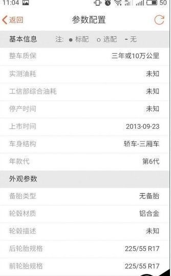 5、若您还想了解有关这部车的其他检测信息,也可以下拉页面查询该车的参数配置。