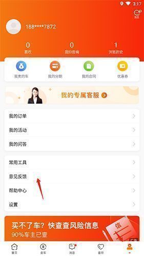 优信二手车如何投诉工作人员,打开优信二手车软件,点击【我的】,点击【意见反馈】,将你的问题填写,然后留下电话号码即可,还可以选择联系官方客服电话10106088直接进行投诉。