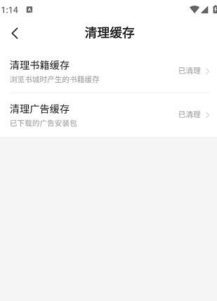 4、然后就会来到新的界面,在这里就可以对书籍缓存以及广告缓存进行清理了。