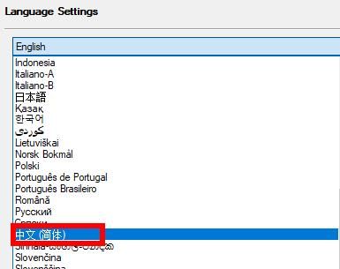 4、然后点击右侧选项框的下拉按钮,选择选项列表中的"中文(简体)"。
