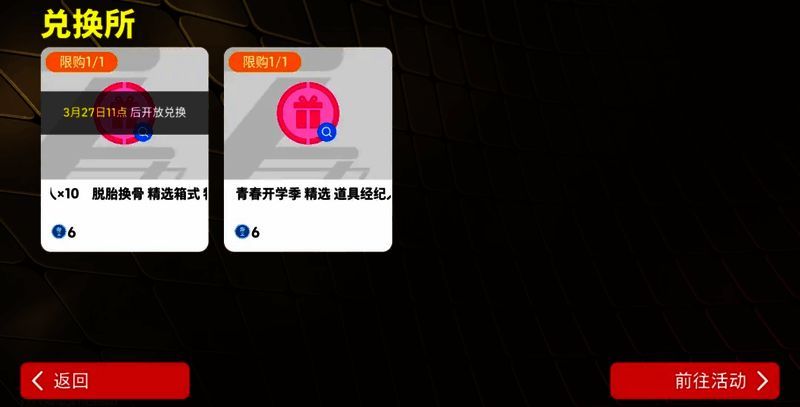 在【版本前瞻 兑换所】活动期间,玩家完成任务可以获得【巅峰对决代币】,通过在兑换所中消耗代币,你将有机会获得【脱胎换骨 精选箱式经纪人*10】、【青春开学季 精选 道具经纪人*10】等道具奖励!