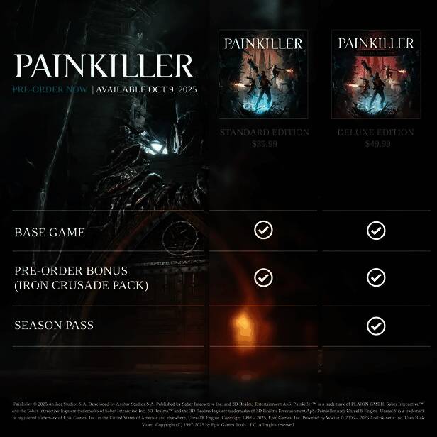 近日Anshar Studios和Saber Interactive宣布,《止痛药》新作将于10月10日发售。本作已开启预购,官方还发布新预告,一起来看看吧。