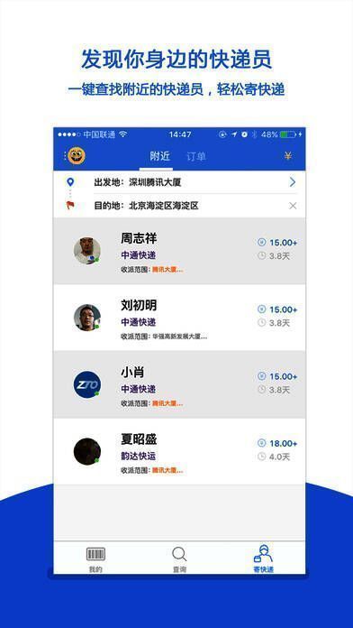 用户可快速查找附近快递员信息,并通过电话预约取件时间,实现高效寄送。同时支持关注常用快递员,打造专属服务团队,让寄件更加个性化和便捷化。