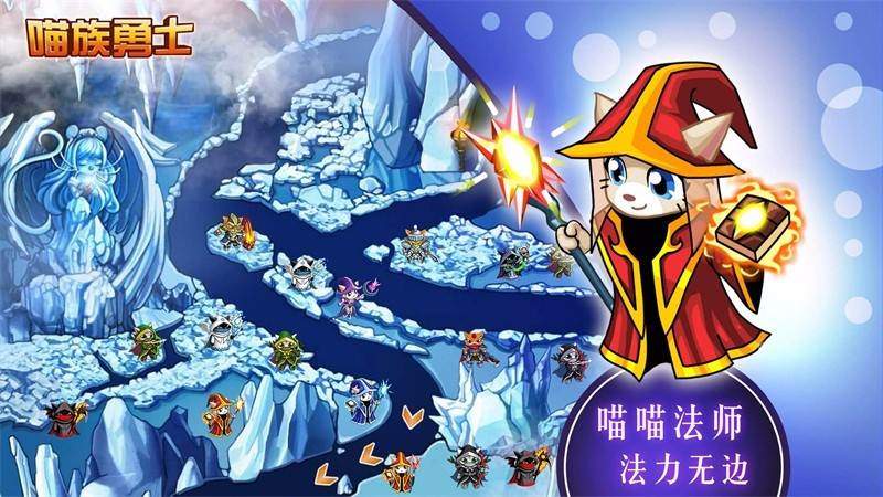 游戏在传统塔防的基础上加入了丰富的角色系统与成长机制。玩家可以通过召唤系统部署四大职业的猫咪勇士,包括剑士、法师、弓箭手与战士,并根据敌人的物理与魔法防御特性灵活调整战术。