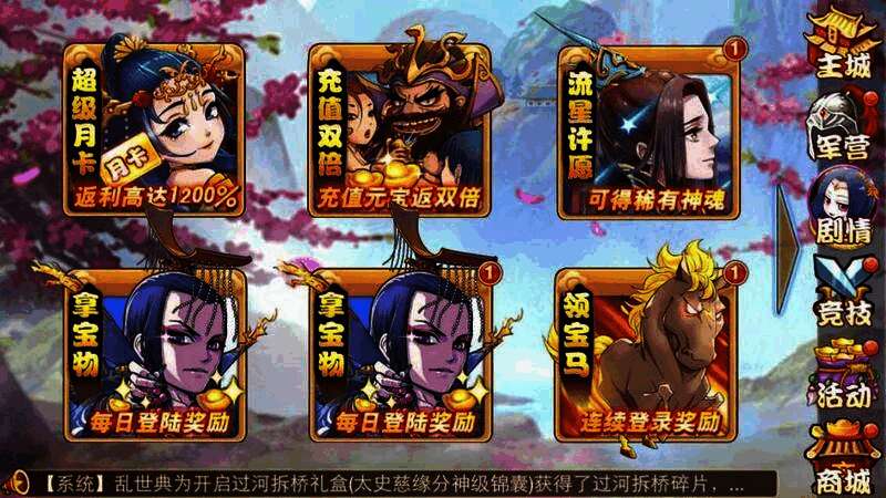 游戏还设有丰富的关卡挑战系统,随着版本更新不断加入新地图、新武将和新装备,如v9.13.0.0版本中新增了女神系统、45-49关卡、7级宝石合成等玩法,进一步提升了游戏深度与可玩性。