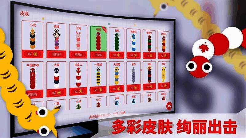 游戏的一大亮点在于丰富的个性化装扮系统。玩家可以通过收集或解锁多种风格各异的可爱皮肤,为自己的贪吃蛇打造独一无二的形象。从呆萌到搞怪,每一款皮肤都充满创意,让战斗过程更具趣味性和沉浸感。