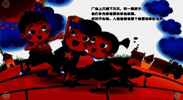 故事的主人公贝贝从未见过真正的彩虹,却对它充满了无限想象。一次偶然的机会,她在广场上捡到一块破损的彩色玻璃,透过它抬头望天,竟意外看到了梦幻般的彩虹世界。这一幕吸引了周围的小朋友纷纷效仿,他们也抬头望去,到底看见了什么?接下来又会发生哪些令人期待的故事呢?
