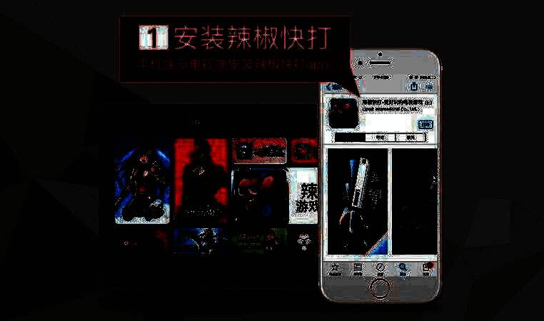 辣椒快打TV版界面展示,手机与电视连接操作示意图">