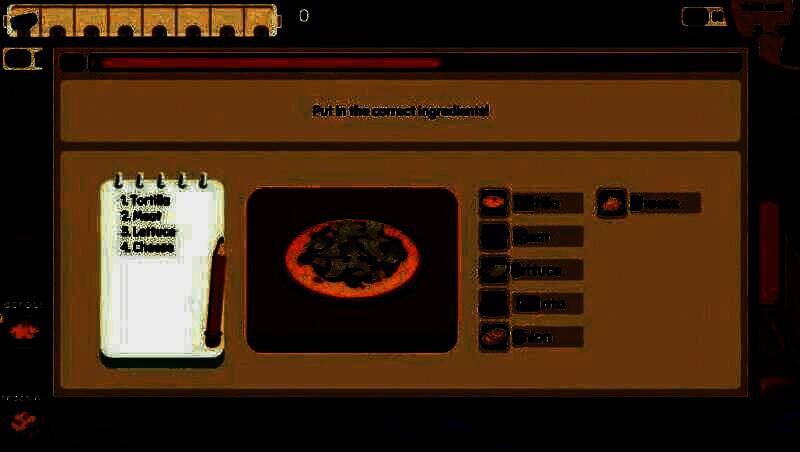 本作的核心玩法完全依赖于键盘操作,玩家需通过快速准确地输入食材名称和烹饪动作来完成订单。例如,“tomato chop”表示切番茄,“serve table3”则是为三号桌送餐。随着关卡推进,订单难度逐步升级,玩家需要同时管理多个菜品进度,并灵活切换工具应对突发事件,比如使用“Shift”键调出灭火器驱赶老鼠。部分章节还加入了销售目标挑战与“食谱保卫战”,让玩家用手枪击退觊觎秘方的反派威斯克先生。