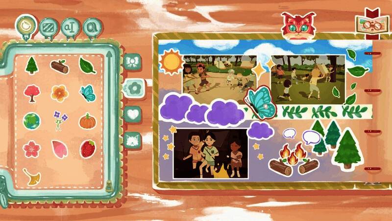 游戏采用明快治愈的绘本风格,照片的泛黄质感与色彩鲜艳的手绘贴纸形成鲜明对比,带来怀旧又不失童趣的视觉体验。动态细节方面,照片插入时的柔光涟漪、猫咪助手探头的动画效果,都为静态页面增添了生动感。配合轻柔的钢琴旋律与纸张翻页、快门按下的自然音效,整体营造出一种仿佛真正翻阅旧相册般的沉浸体验。
