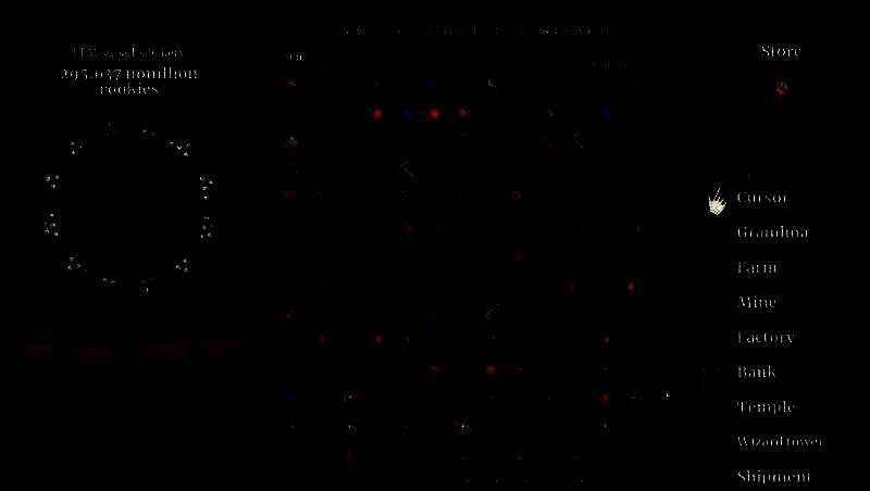 游戏的核心玩法非常直观:点击屏幕中央的大饼干(Cookie)来获取cookies。随着积累的增多,玩家可以购买多种自动化生产设备,如光标、奶奶、农场等,这些设施会持续产生饼干,提升整体效率。