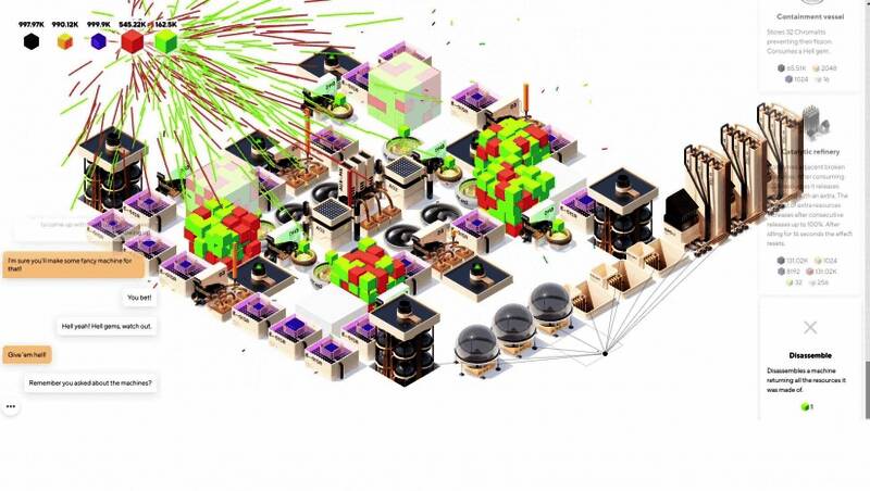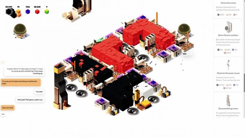 玩家从一个简单的机器开始,这个机器可以生成独特的方块。通过收集这些方块,他们可以使用它们的组合来解锁更高级的机器。新机器可以生产不同类型的块或资源,为进一步开发提供基础。