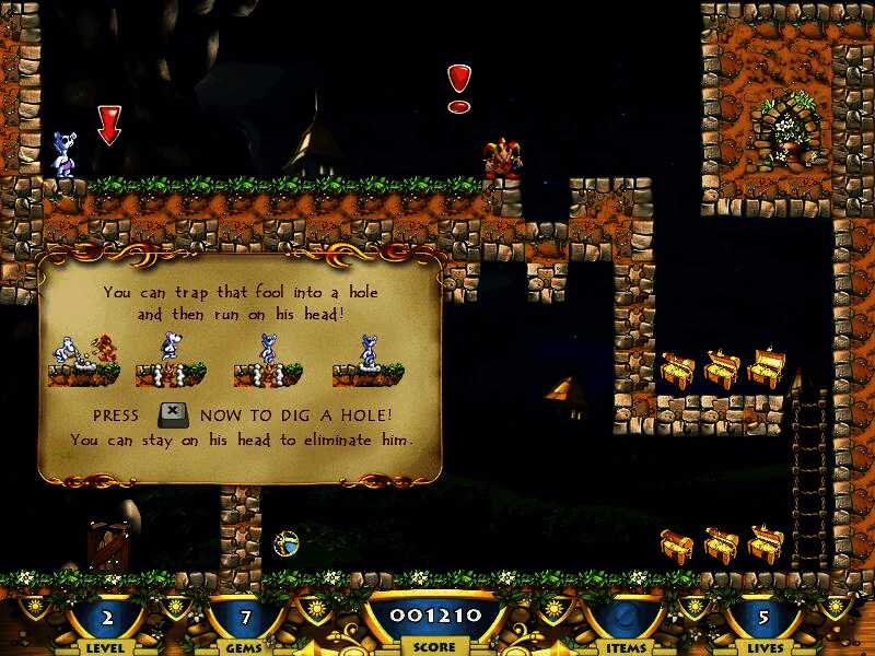 史努伊利用身上的十字镐能够挖掘地面 ,坑能够帮你下一层,也可以帮你坑杀敌人,挖掘出来的坑过一段时间就会自动恢复。与前作相比游戏除了笼子道具外还加入了需要钥匙的门锁、传送门和炸弹等新元素。