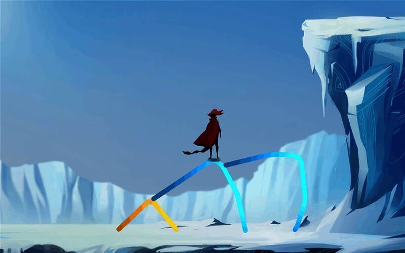 2、 你可以在断崖间画出桥梁帮助主角安全通过。你还可以画出翻越高台的斜坡、推开石门的撞锤还有漂浮在水上的小船等各种东西来帮助主角。