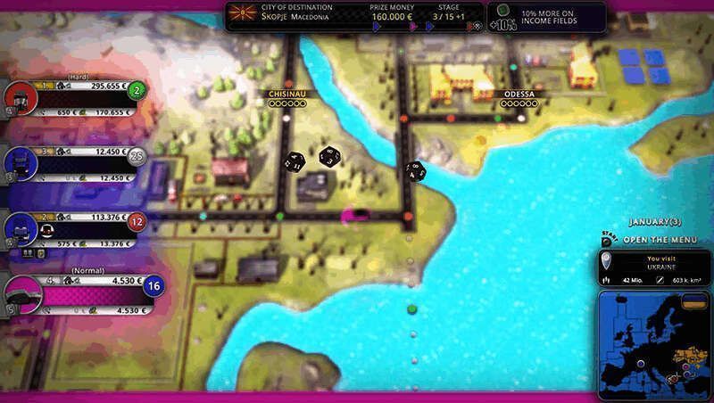 《赚钱者拉力赛(The MoneyMakers Rallye)》是一款有趣的模拟经营游戏,整体玩法类似大富翁,地图则是整个欧洲,你要驾驶赛车穿越欧洲,赚到最多的钱,赢得最终的冠军。