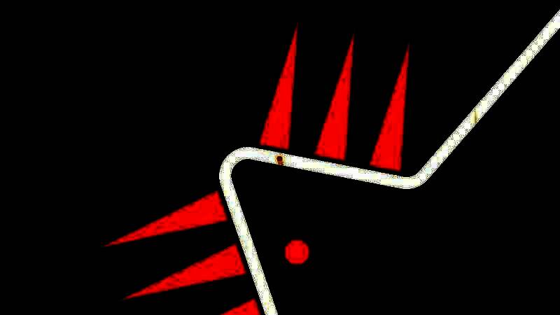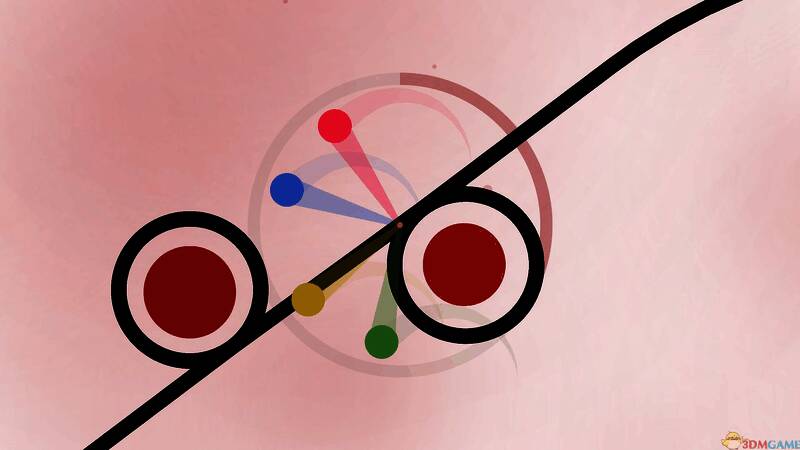 进入游戏后,玩家会看到简洁的彩色背景下,一条白色的线状轨迹曲折延伸,贯穿全景。在线上有一个连接着彩色圆球的小点,这个小点会沿着轨迹一直向前移动,玩家通过点击画面左右侧可以控制圆球以小点为圆心转动。游戏机制就是让圆球在不断前进中改变方向,以避开那些轨道线上奇形怪状的障碍物,最后到达终点。