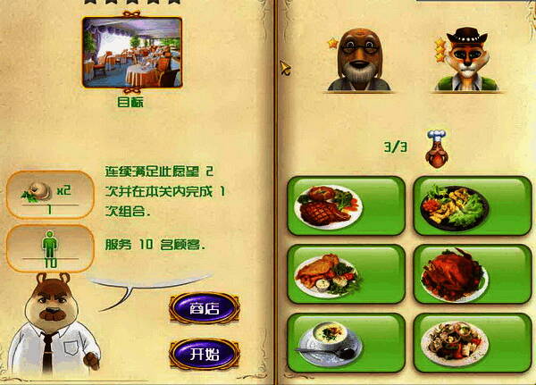 具备了高水准的图像制作,4家不同风格的主题餐厅等待你去经营,以及40个趣味十足的关卡,14种不同类型的迷你游戏,还有众多的奖章可以收集。