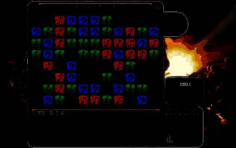 游戏的玩法简单,需要玩家通过鼠标进行控制,在游戏开始时会做出相应的讲解。根据盘面下方传送带中出现的方块数量和颜色,在大盘面中连接相邻的方块进行消除,充满气槽即可进入新的关卡。