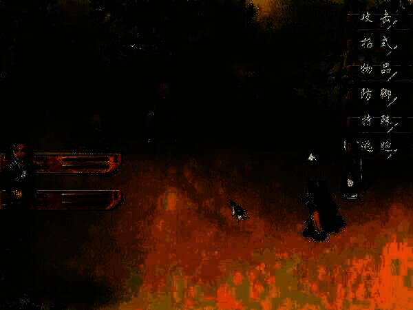 《四大名捕》的作战非常像《轩辕剑Ⅲ云和山的彼端》,不要怪我又举大宇游戏的例子,因为这款智冠版游戏的“大宇味道”实在是太浓了。也是以一张水墨画为背景,人物分居两端开战。这当然也不算大宇的专利,其实是最初的RPG战斗模式,早期武侠游戏很多都是如此。后期出现的俯视视角、变化视角、3D缩放等等战斗新模式,虽然从视觉效果上来看比较炫,不过偶尔玩玩《四大名捕》这样的简单的复古模式战斗也很有趣。但是,比较不舒服的是,战斗中老是要动用鼠标点来点去发布命令,而没有相应的键盘快捷键(例如代表AUTO的A),这在长期练级工作中是很累地。