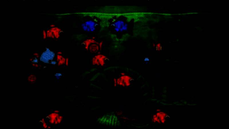 另外玩家要小心这些鱼一旦在一定时间之内,没有吃到饲料可是会归天的。另外会出现怪兽攻击这些鱼儿,玩家此时喂鱼的功能会变成攻击的武器,要尽快击退这些怪物,否则当这些怪物将所有的鱼儿吃掉后,游戏将会结束。画面的上面有一排横列的图示,上面标满了各式各样的生物,或者饲料与武器。