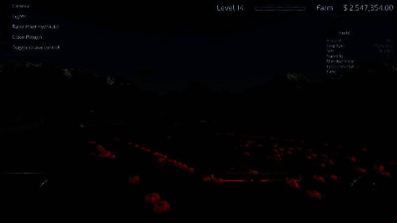 4、农作物成长之后余下的工作就是收割了,玩家需要使用联合收割机来收割农作物,然后把它放到土地旁边的拖车里。