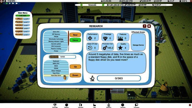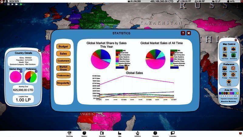 在电脑大亨中, 你在开发过程中做出的决定真的很重要。利用技术, 升级和设计组合!您的产品需要更多的计算能力, 还是应该更多地关注功能、低价或声望?可能会更改为可携式电脑或开发更便于使用的作业系统?这些决定将对贵公司的成功产生重大影响。