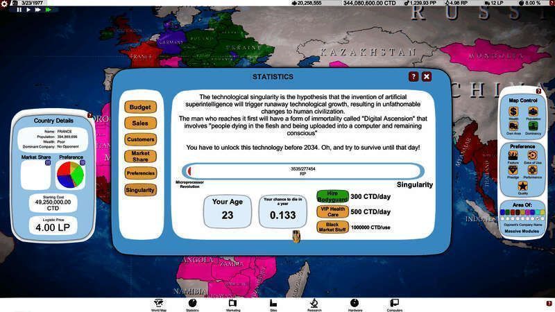 有一天我们都会死, 但不是电脑大亨。你可以通过成为一个垄断或达到技术的奇点, 如果你是快速和健康足够的游戏赢得比赛。健康?是的, 你有一个小的机会死在游戏中, 所以你应该定期检查你的健康。