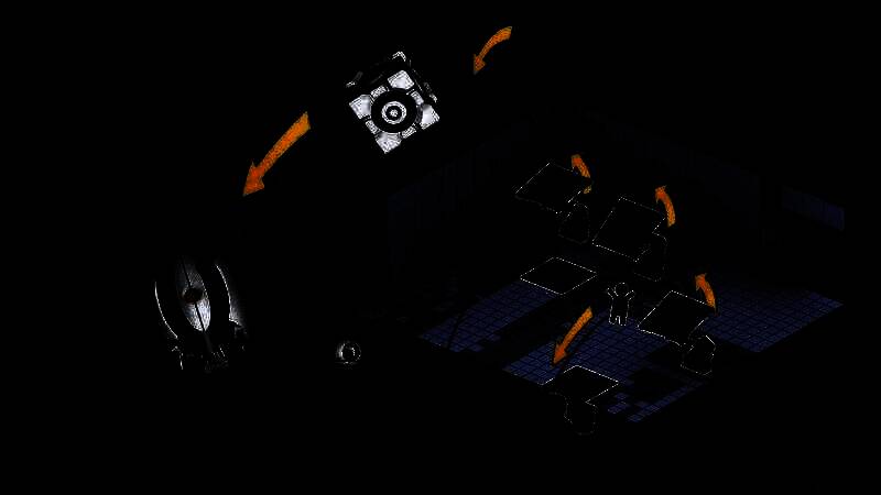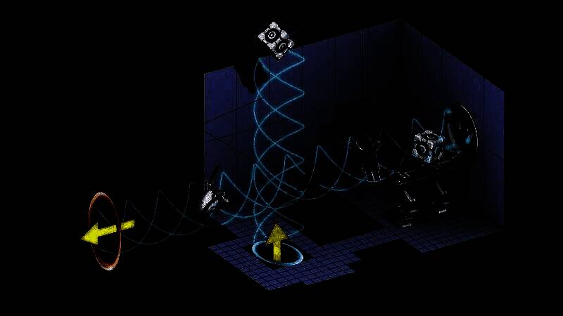 玩家手持传送枪,通过在墙壁、地板等位置发射蓝色与橙色的传送门来解谜闯关,而非传统的射杀敌人。游戏中的关卡目标多为将重量储存方块放置在光圈科学超大型撞击按钮上。玩家需利用传送门的空间扭曲特性,如从高处跳下穿过地板的传送门可从墙上的传送门安全飞出等,还可借助引力爪抓取物体一同穿过传送门,以应对各种复杂机关和谜题。