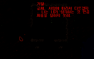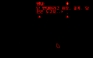 这又是一个述说斩妖除魔故事的RPG,故事开始在一个秘密会议地点的门口,按鼠标右键走到门前用左键点一下门就会打开,回身再点一下门又会关闭,这个动作在以后的游戏中会经常用到,我叫它“环境互动”模式,还有另一个模式叫“行动模式”,和环境互动模式不同的是,行动模式只能操作主角本身不能操作其它物品,区别两种模式的标志是看主角头上是不是有个三角,如果有三角则不能做开门之类的动作,此时按C键即可消除三角。